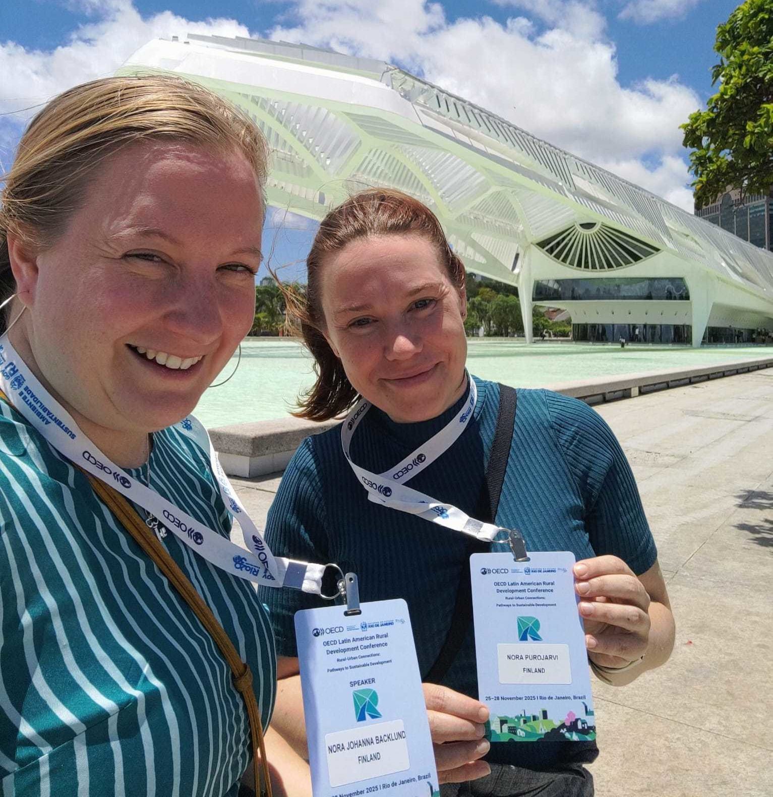 Landsbygdspolitiska KERÄ-nätverkets specialsakkunniga, Nora Backlund och Nora Purojärvi, deltog i OECD:s landsbygdsutvecklingskonferens i Rio de Janeiro den 25–28 november 2025, med temat Rural-Urban Connections: Pathways to Sustainable Development. Resan omfattade två konferensdagar, paneldiskussioner och utställningar på Green Rio-evenemanget samt en besöksdag i nationalparken Tiririca. Den internationella veckan erbjöd många perspektiv på landsbygdens hållbarhetsvägar och på att stärka dialogen mellan landsbygd och stad som en del av att bygga en hållbar framtid. Trots att många av OECD:s medlemsländer hade valt att stå över konferensen skapade evenemanget möjligheter till internationella möten och gemensamma utvecklingsinsatser.